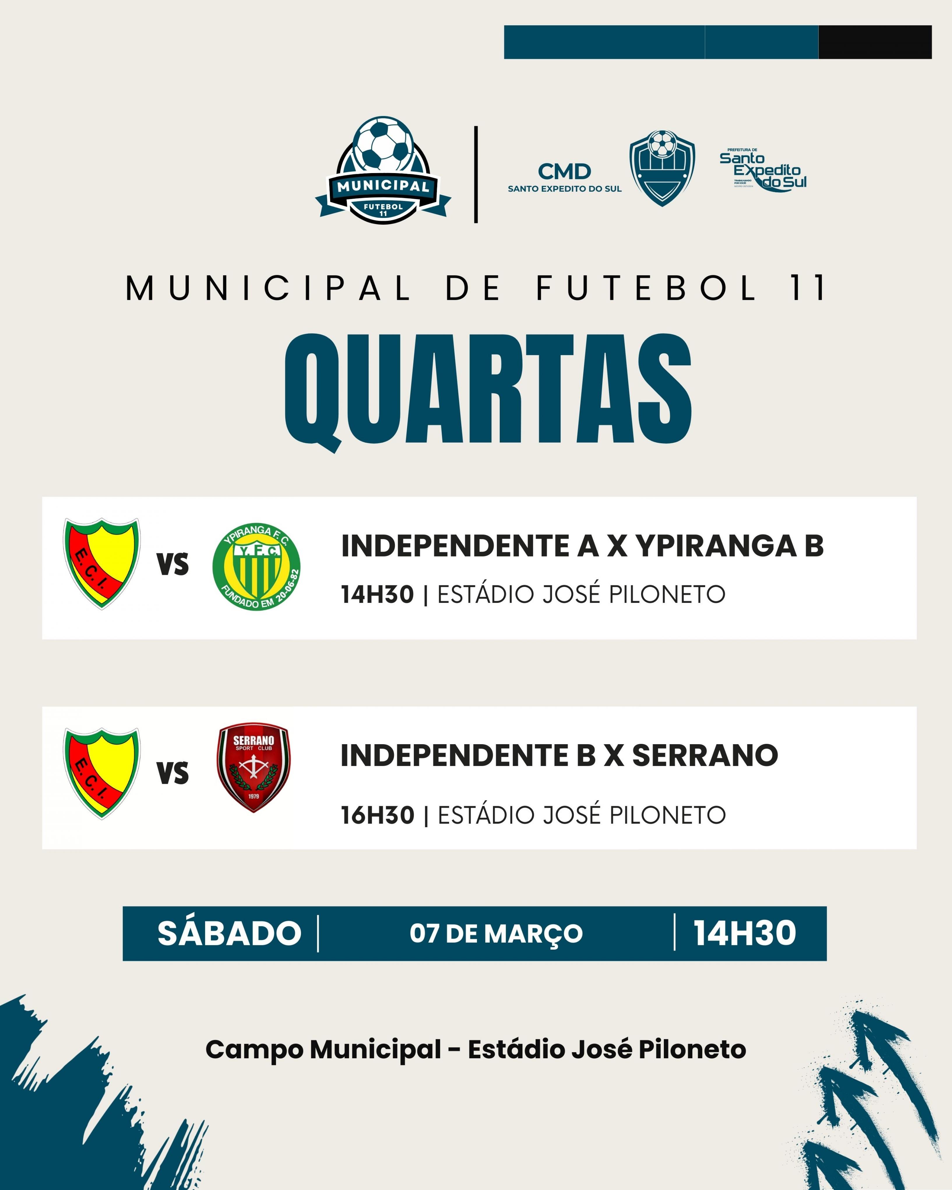 O Campeonato Municipal de Futebol 11, Taça Altemir José Tacca inicia a segunda fase da competição, com a disputa das quartas de finais neste sábado, dia 07 de março. O Ypiranga A e o Esporte Clube Canarinho já estão classificados para as semifinais e aguardam os seus adversários.