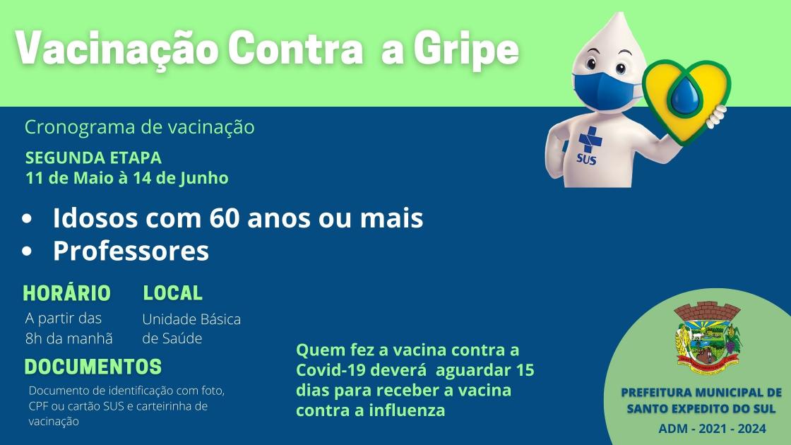 Em meio a imunização contra a Covid-19, Santo Expedito do Sul intensifica também a imunização contra a gripe. No mês de abril ocorreu a primeira etapa da campanha que abrangeu o público de crianças de 6 meses à menores de 6 anos, gestantes e puérperas.