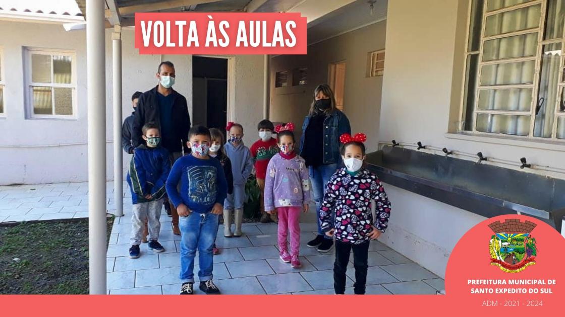 Esta terça-feira, dia 25 de maio, foi dia de volta às aulas presenciais para o 1º. ano das séries iniciais do Ensino Fundamental, alunos sem internet e alunos com dificuldades de aprendizagem do 2º ao 9º ano na rede municipal de Educação de Santo Expedito do Sul. O retorno se deu após a aplicação de uma série de medidas de segurança e distanciamento aplicadas nas escolas.