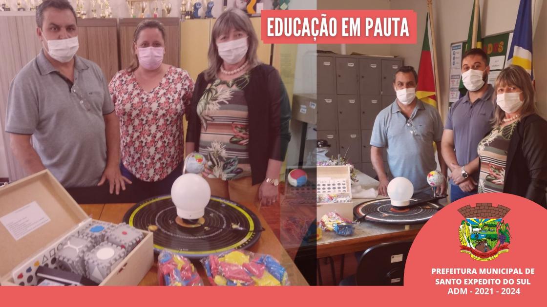 O avanço na área da Educação representa também o desenvolvimento do município e, para ampliar o conhecimento e facilitar a aprendizagem dos alunos, a Secretaria Municipal de Educação tem buscado inovar sempre. Na manhã desta terça-feira, dia 26 de outubro, as escolas da rede municipal de educação receberam novos recursos pedagógicos, que foram entregues pela secretária Delirdes Tonietto e pelo coordenador da área, Celso Cardoso.