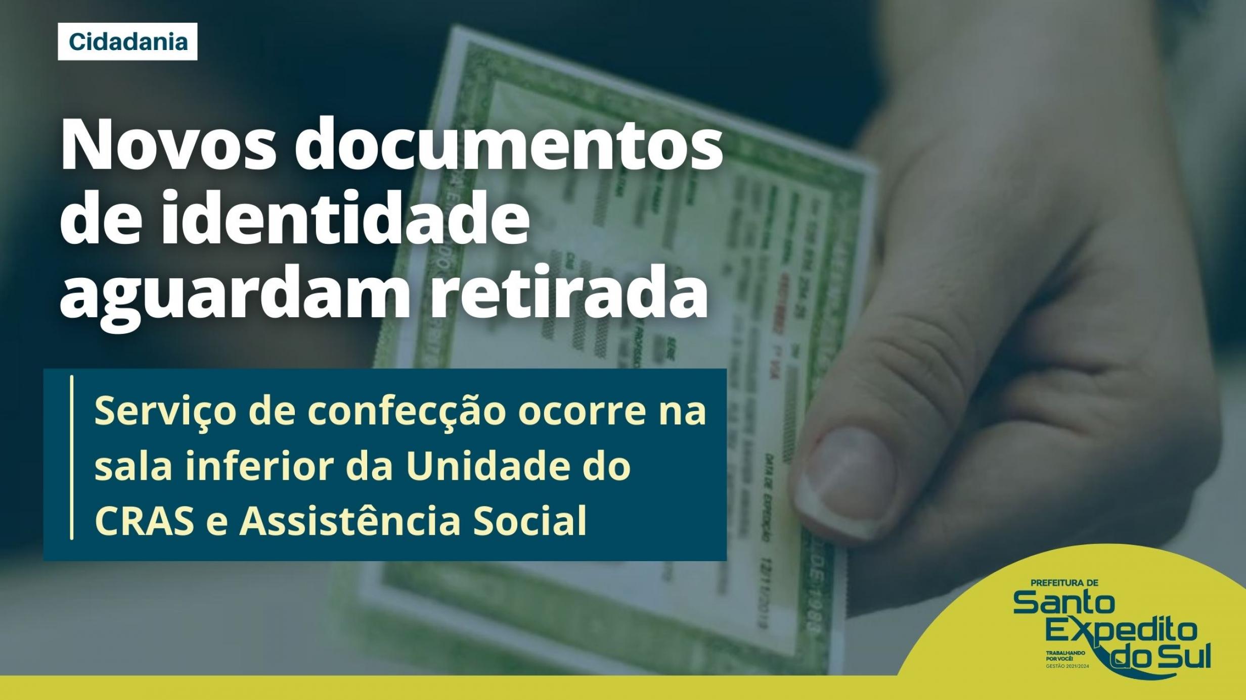 A Administração Municipal de Santo Expedito do Sul, gestão 2021/2024, por meio do setor responsável pela confecção de carteira de identidade, informa a lista de cidadãos que podem comparecer para a retirada dos seus documentos. O RG já está disponível e deve ser retirado no Posto de Identificação, que opera na sala inferior junto à Assistência Social, no horário normal de atendimento das repartições públicas.