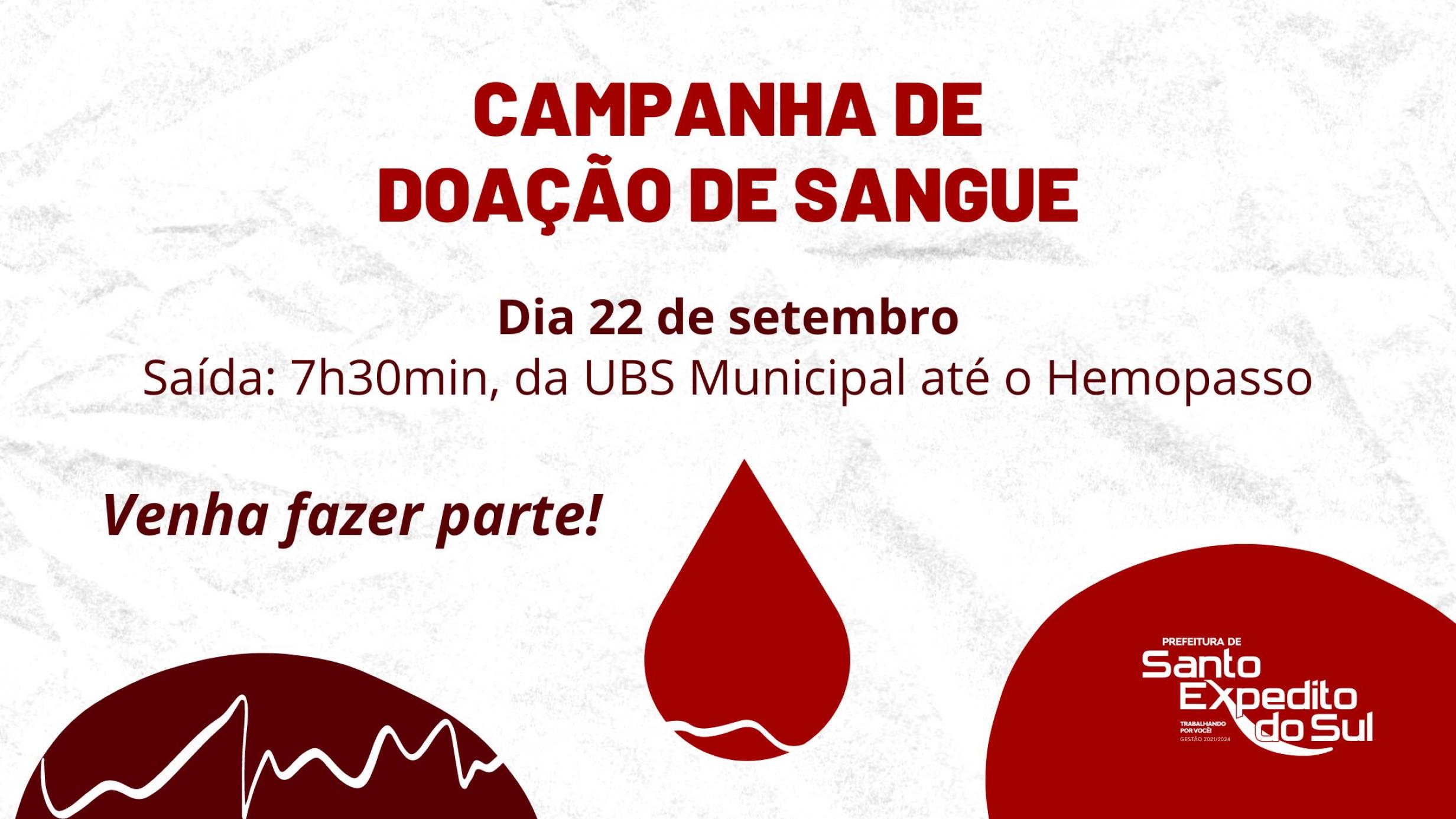 No próximo dia 22 de setembro, o grupo de doação de sangue fará viagem para doação no Hemopasso. A saída da van será às 07h30min da UBS municipal, e a doação ocorrerá em favor de Maria Loreci Klein, que está internada em Passo Fundo.