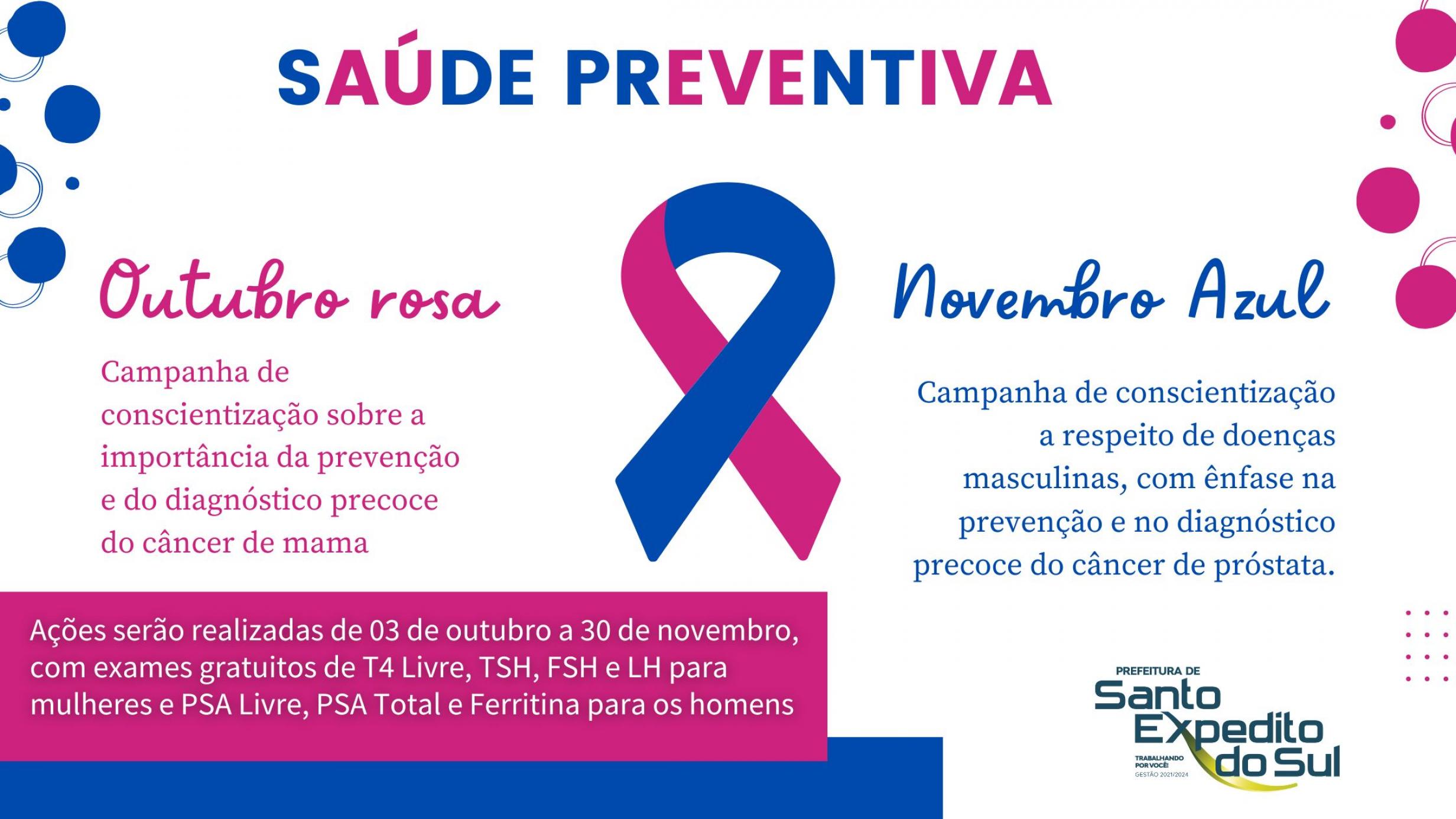 Município terá campanha especial de outubro rosa e novembro azulMunicípio terá campanha especial de outubro rosa e novembro azul