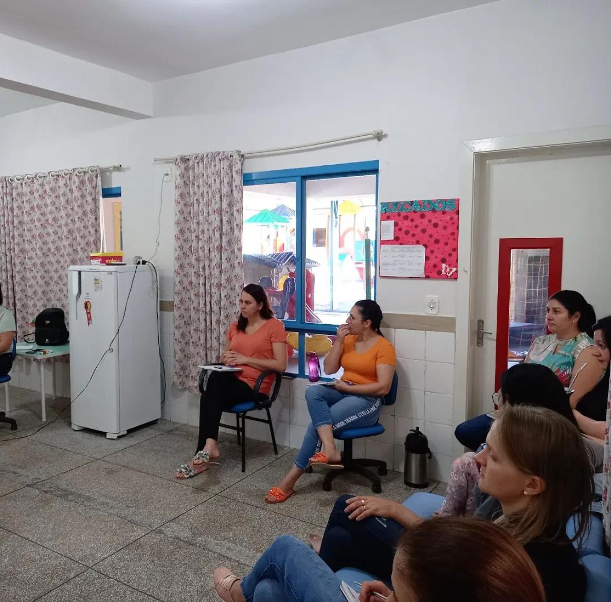 Nesta manhã de quarta-feira, dia 01 de março, as professoras da Escola Infantil Criança Feliz passaram por formação com a profissional Carine Marcon.
