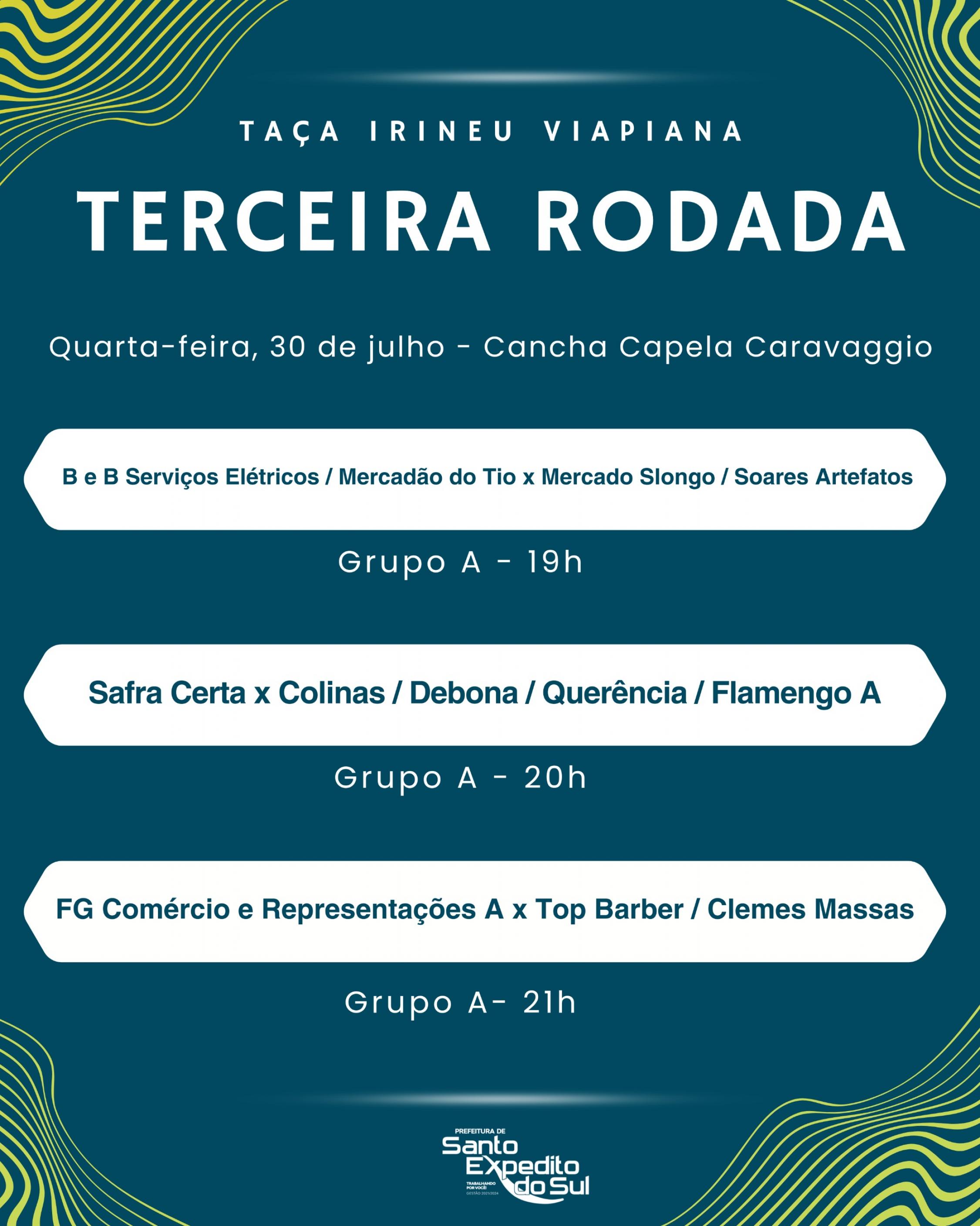 Confira os jogos da terceira rodada do Campeonato Interfirmas de Bochas. A disputa continua nesta quarta-feira, dia 30 de julho, e sexta-feira, dia 1º de agosto, com a terceira rodada sendo realizada nas canchas da Capela Caravaggio e do Plínio, na comunidade Divino.