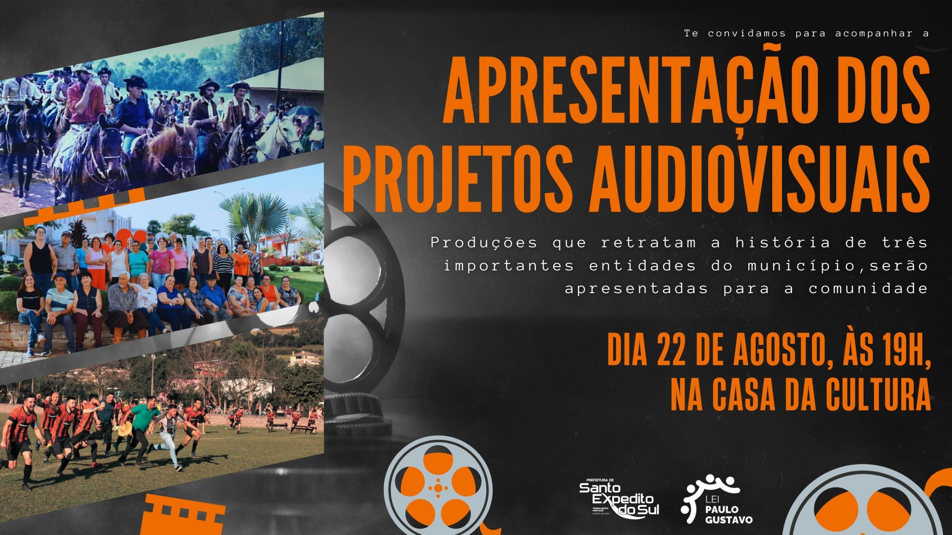 Nesta sexta-feira, 22 de agosto, às 19h, a Casa da Cultura de Santo Expedito do Sul será palco de uma noite especial dedicada à valorização da memória e da identidade local. O público poderá assistir à estreia de três produções audiovisuais inéditas, que resgatam e celebram a trajetória de entidades que fazem parte da história do município.