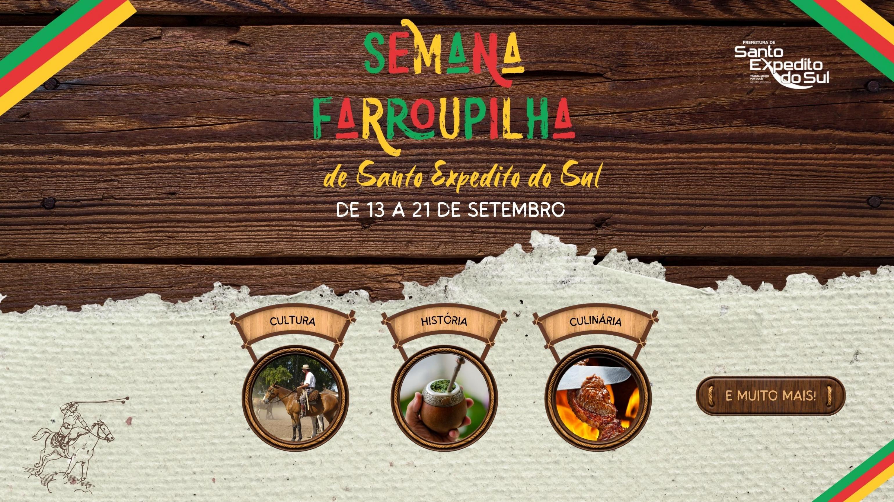 A Prefeitura de Santo Expedito do Sul divulgou a programação da Semana Farroupilha 2025, que contará com cavalgada, almoços e jantares temáticos, encontro da terceira idade, ação beneficente e encerramento com atividades culturais e artísticas.