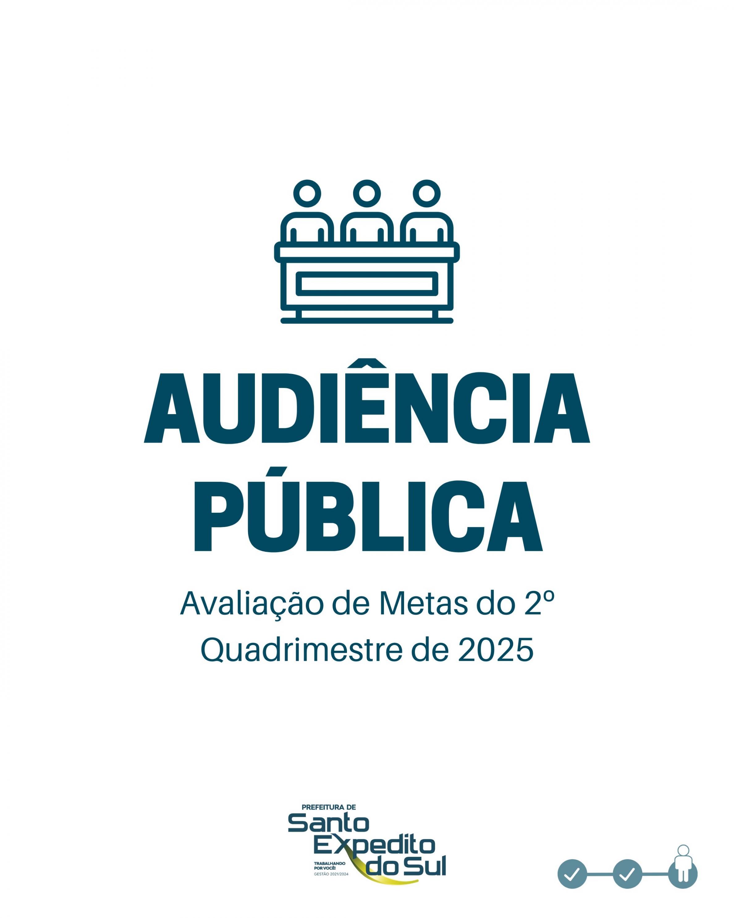 A Prefeitura de Santo Expedito do Sul, por meio do Prefeito Vantuir Dutra, convida a comunidade a participar da audiência pública que será realizada no próximo dia 23 de setembro de 2025, às 15h, nas dependências da Câmara Municipal de Vereadores.