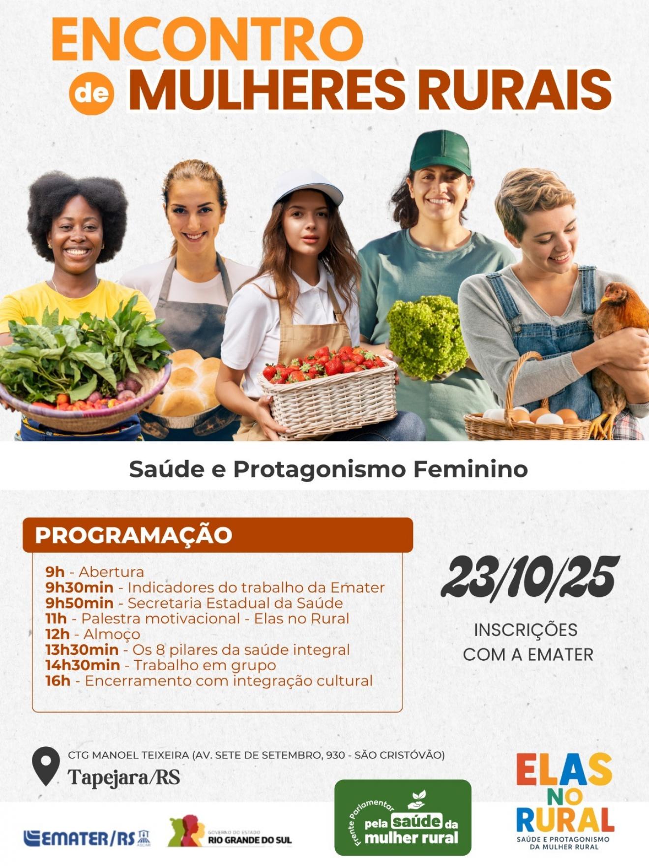 O evento é uma realização da Emater/RS-Ascar, com apoio do Governo do Estado do Rio Grande do Sul e do programa Pela Saúde da Mulher Rural.