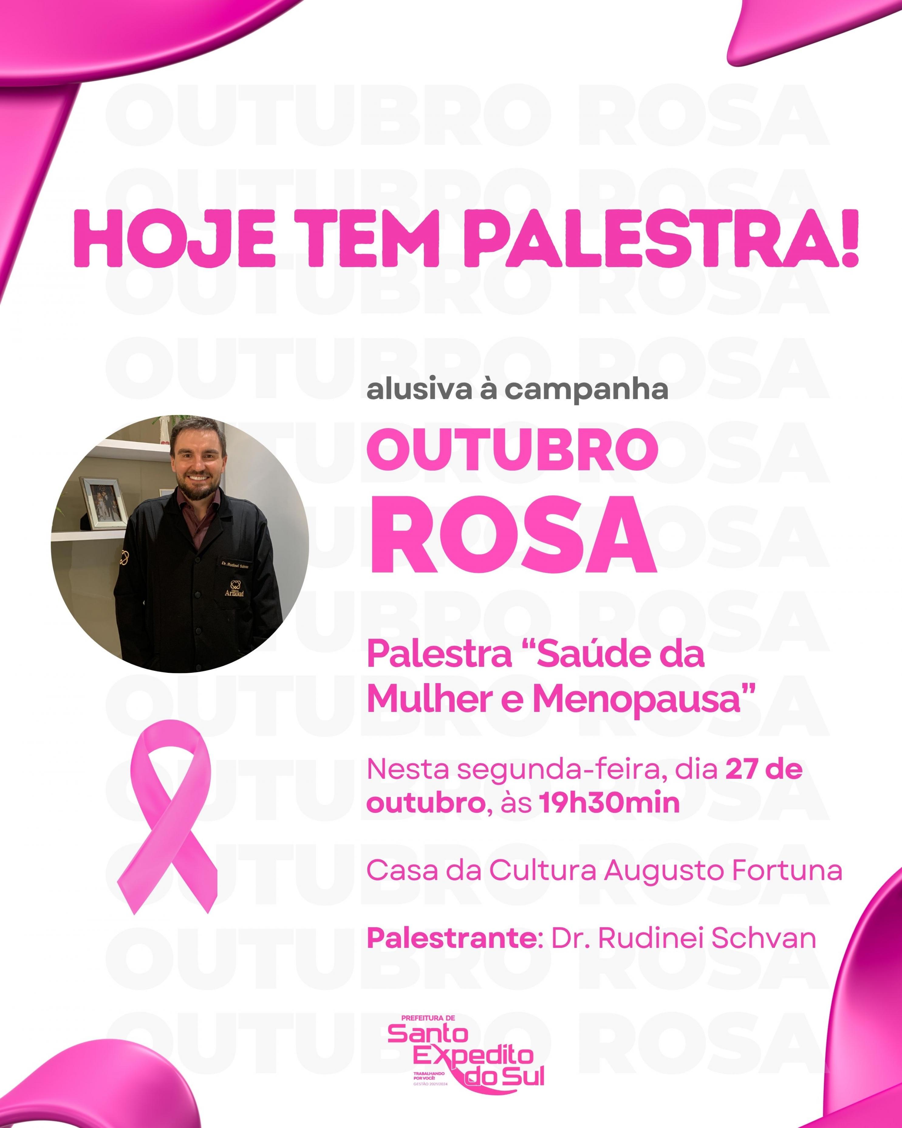 O evento será realizado nesta segunda-feira, dia 27 de outubro, às 19h30min, na Casa da Cultura Augusto Fortuna, e contará com a presença do médico Dr. Rudinei Schvan, que ministrará a palestra “Saúde da Mulher e Menopausa”.