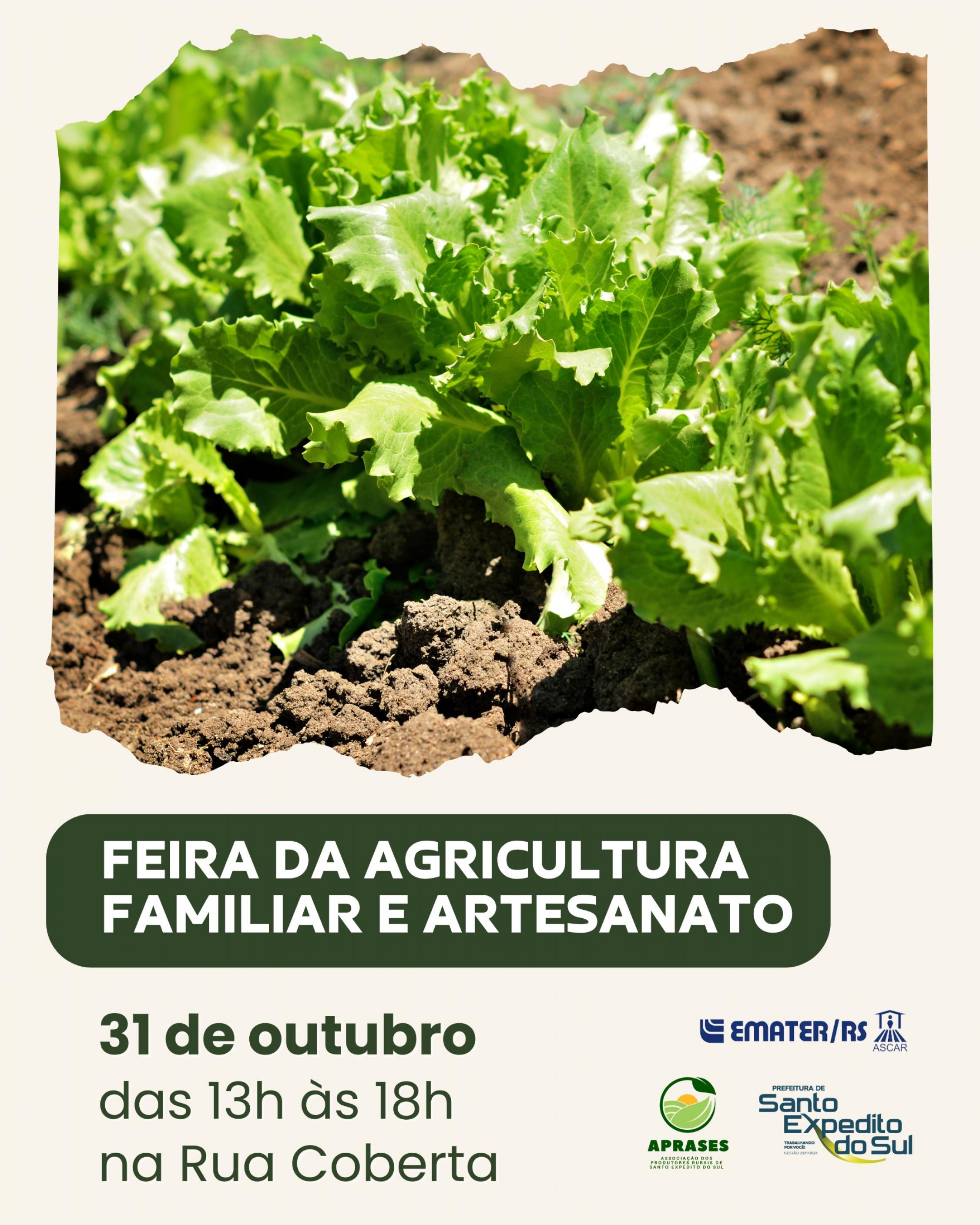 Nesta sexta-feira, dia 31 de outubro, ocorre mais uma edição da feira da agricultura familiar e artesanato. Os produtores estarão disponíveis para comercializar os seus produtos na Rua Coberta, das 13h às 18h. A comunidade está convidada a prestigiar.