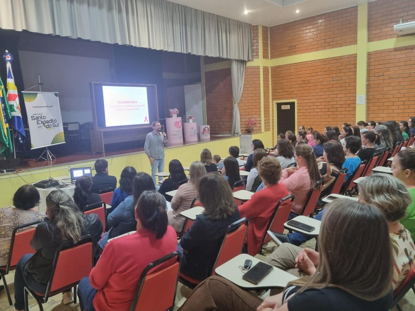 A noite da última segunda-feira, 27 de outubro, foi marcada por um momento de acolhimento, aprendizado e conscientização em Santo Expedito do Sul. A Secretaria Municipal de Saúde realizou um encontro especial em alusão ao Outubro Rosa, campanha que reforça a importância da prevenção e do diagnóstico precoce do câncer de mama e do colo do útero, além de valorizar o cuidado integral com a saúde da mulher.