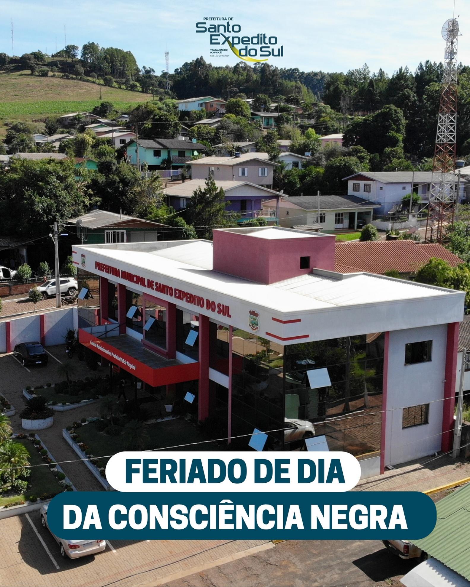 Nesta quinta-feira (20) é celebrado o Dia Nacional da Consciência Negra, data que marca a morte do líder quilombola Zumbi dos Palmares. Com o Decreto Municipal nº 2.678, de 12 de novembro de 2025, que altera o calendário de feriados e pontos facultativos nas repartições públicas municipais de Santo Expedito do Sul para o ano de 2025, no dia 20 de novembro (quinta-feira) é feriado nacional, e o dia 21 de novembro (sexta-feira) será ponto facultativo nas repartições públicas municipais.