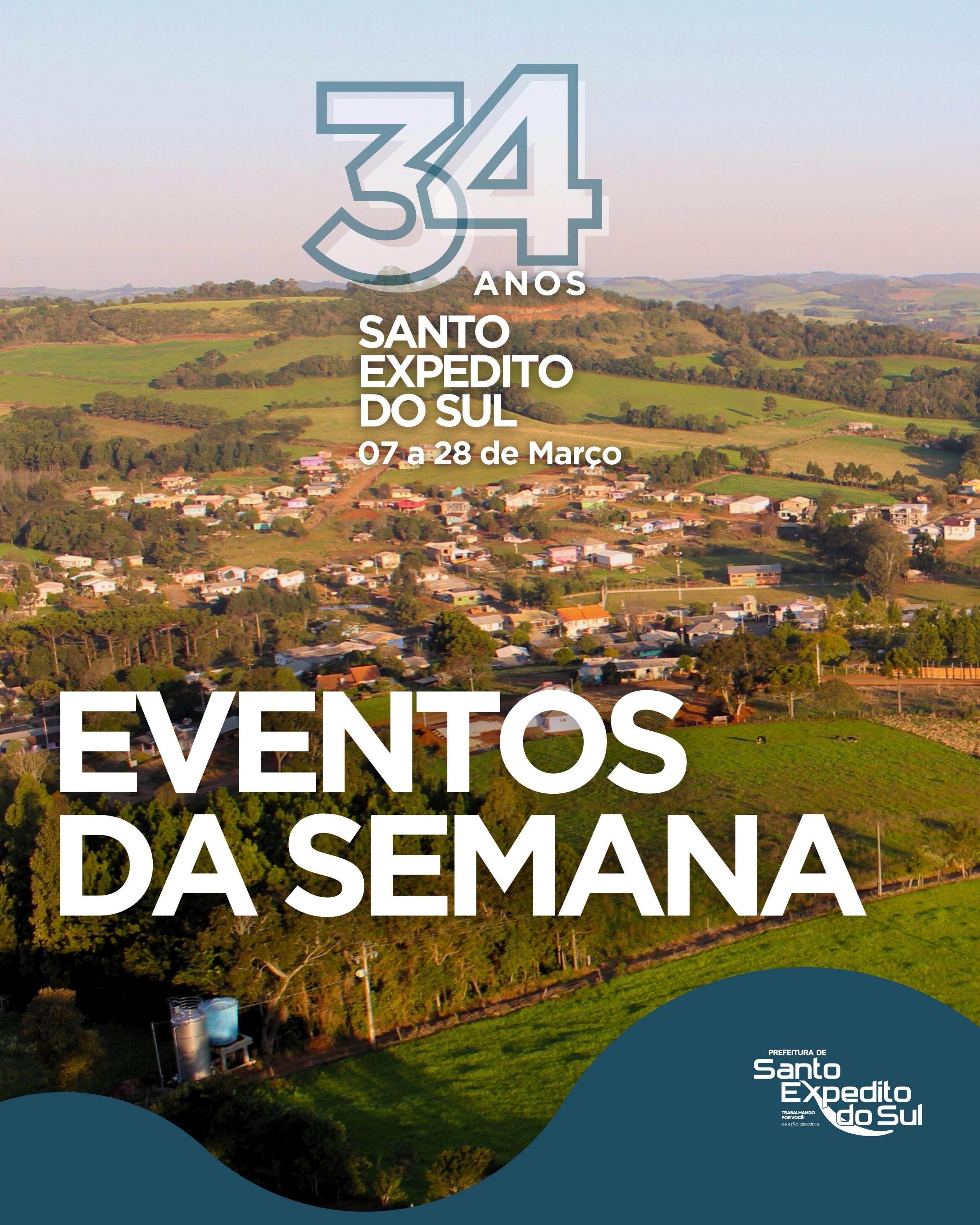As comemorações pelos 34 anos de emancipação de Santo Expedito do Sul seguem com uma série de atividades programadas para este fim de semana, reunindo ações voltadas à saúde, tradição gaúcha e celebração religiosa.
